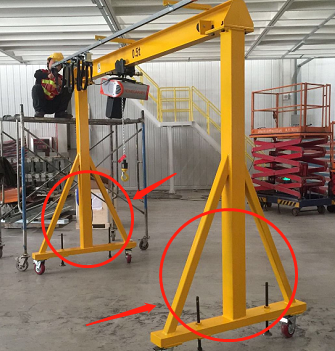 因為三角形具有穩(wěn)定性原理,這種在很多設備上都有體現(xiàn),例如自行車的大梁,救援三腳架等等,小型龍門吊正是采用了這種結構設計,方才保證了在行進過程中的安全平穩(wěn)。